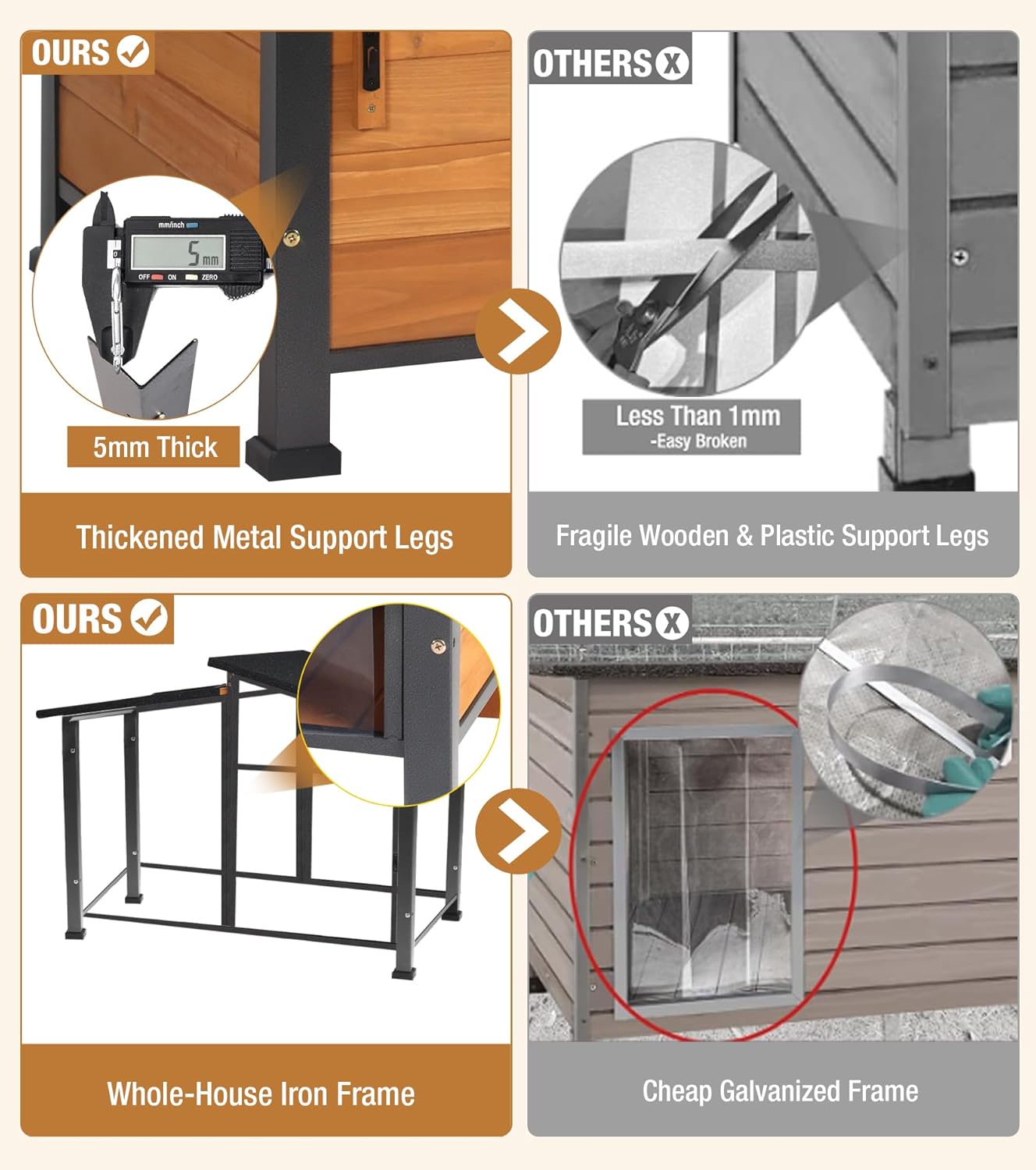 • π–π‡πŽπ‹π„-π‡πŽπ”π’π„ πˆπ‘πŽπ π…π‘π€πŒπ„ π…πŽπ‘ π”π‹π“πˆπŒπ€π“π„ πƒπ”π‘π€ππˆπ‹πˆπ“π˜ - Constructed with a robust iron frame reinforcing every wooden plank, this outdoor dog house (ideal for large dog houses outside) resists chewing and wear. The 16mm-wide frame ensures long-lasting use, outperforming flimsy alternatives for your dog kennel