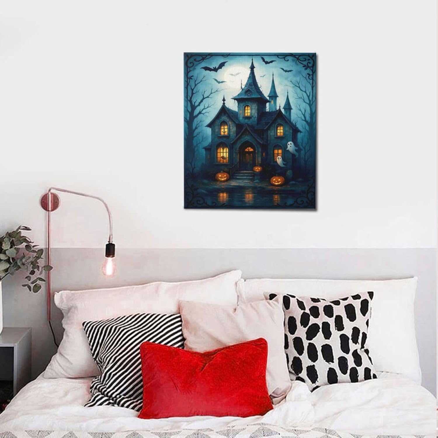 Halloween Gothic Wall Art Castle Pumpkin Ghost Bat Canvas Wall Decor Dark Academia Pictures Painting Print Framed Artwork Decorations Gifts for Halloween Living Room Bedroom Office 20"x24"