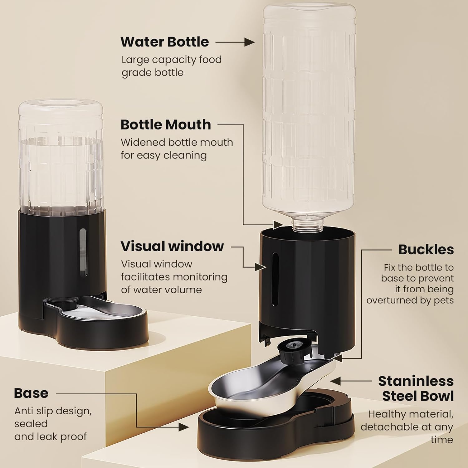 CZPET Automatic Dog and Cat Water Dispenser with Stainless Steel Bowl Gravity Waterer,100% BPA-Free,Large Capacity and Drinking Area Noise-Free for Pets