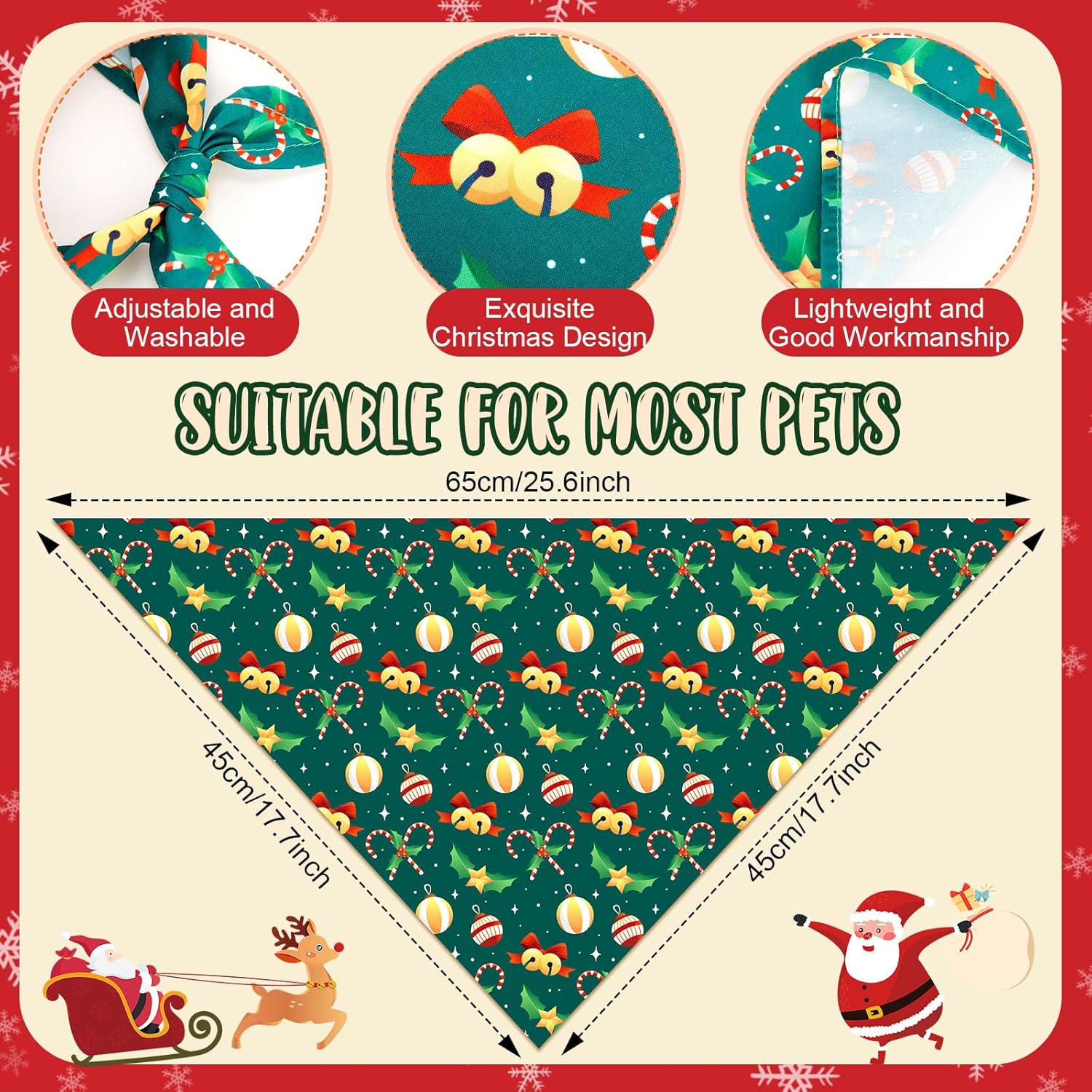 - Wide Applications: our christmas dog bandanas look festive and beautiful, you can use these to decorate your dogs or cats and make them fashionable and fantastic in every occasion; It is good for Christmas, let's make your pet show a different appearance